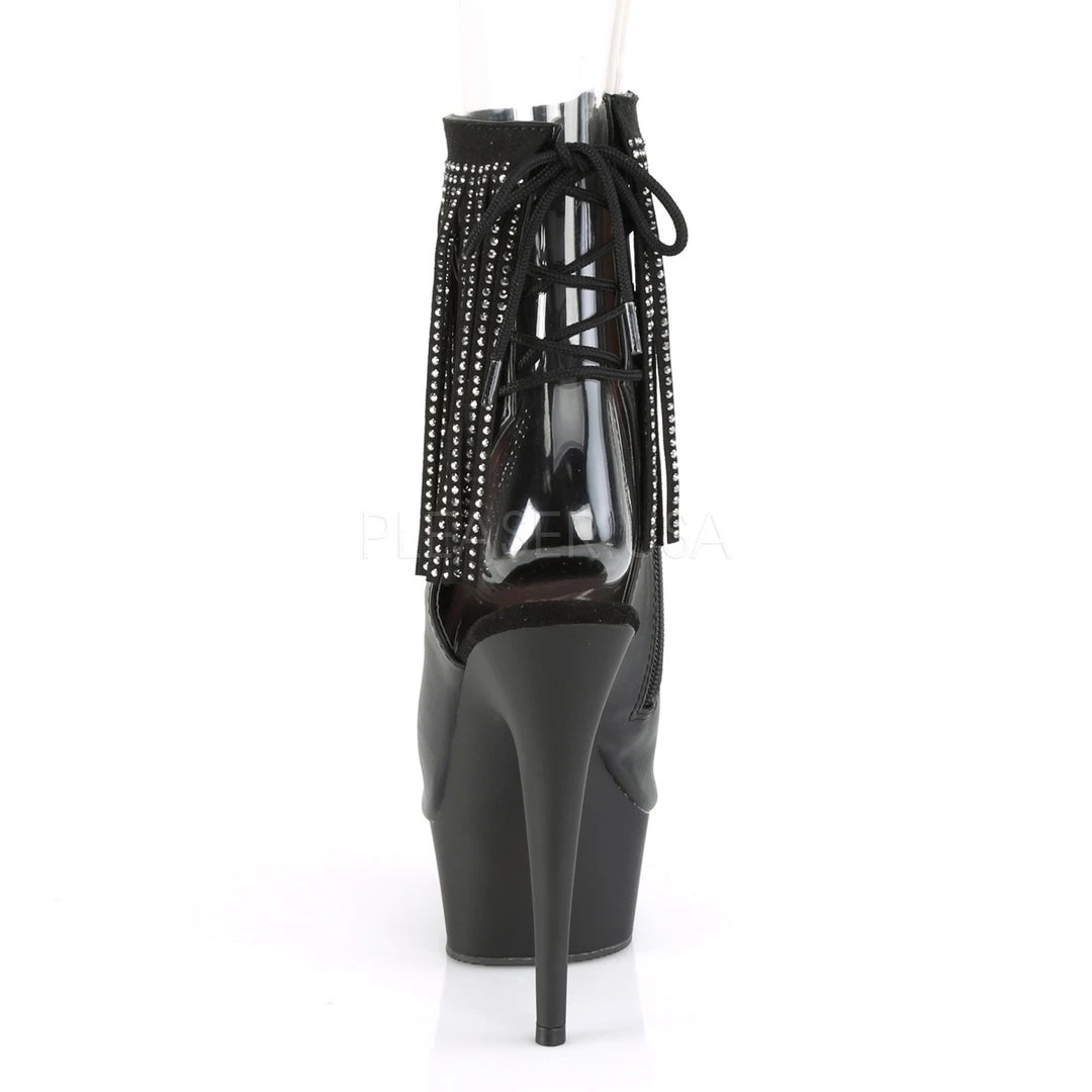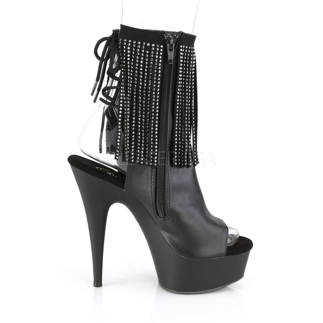 - 6″ Heel, 1 3/4″ Platform Open Toe RS Fringe Ankle Boot, Side Zip