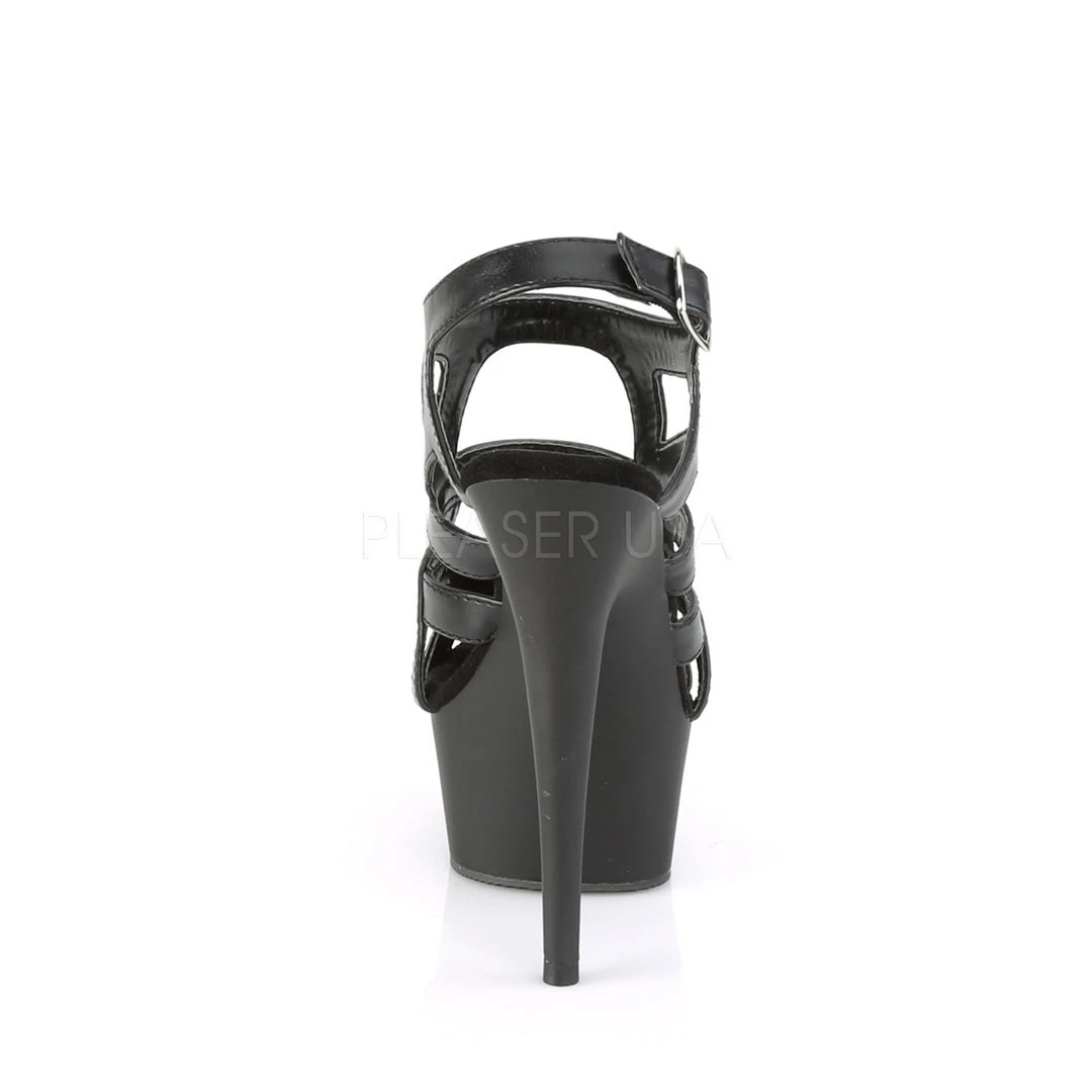 - 6″ Heel, 1 3/4″ Platform Cage Style Sandal