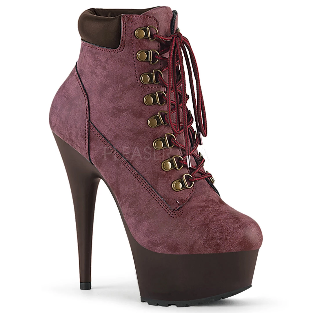 - 6″ Heel, 1 3/4″ Platform Lace-up Front Bootie, Side Zip