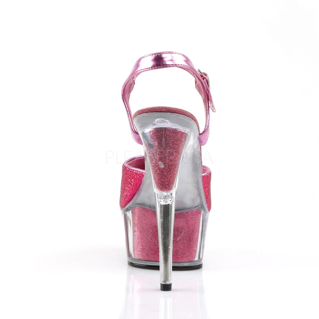 Women’s hot pink ankle strap glitter stripper shoes with a 6″ stiletto heel and 1.8″ Platform.