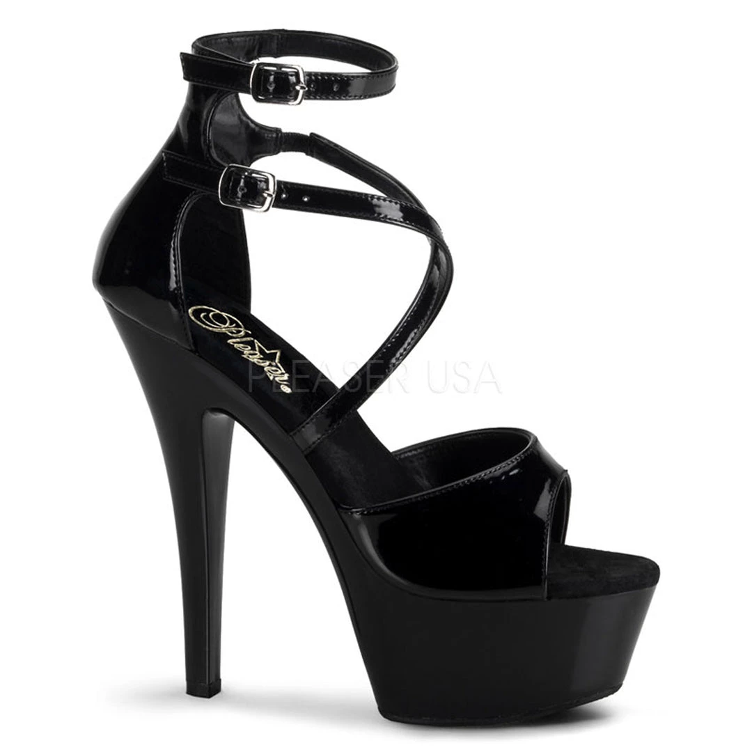 Make a statement with these 6 inch heel black sandal shoes with 1.8″ platform.