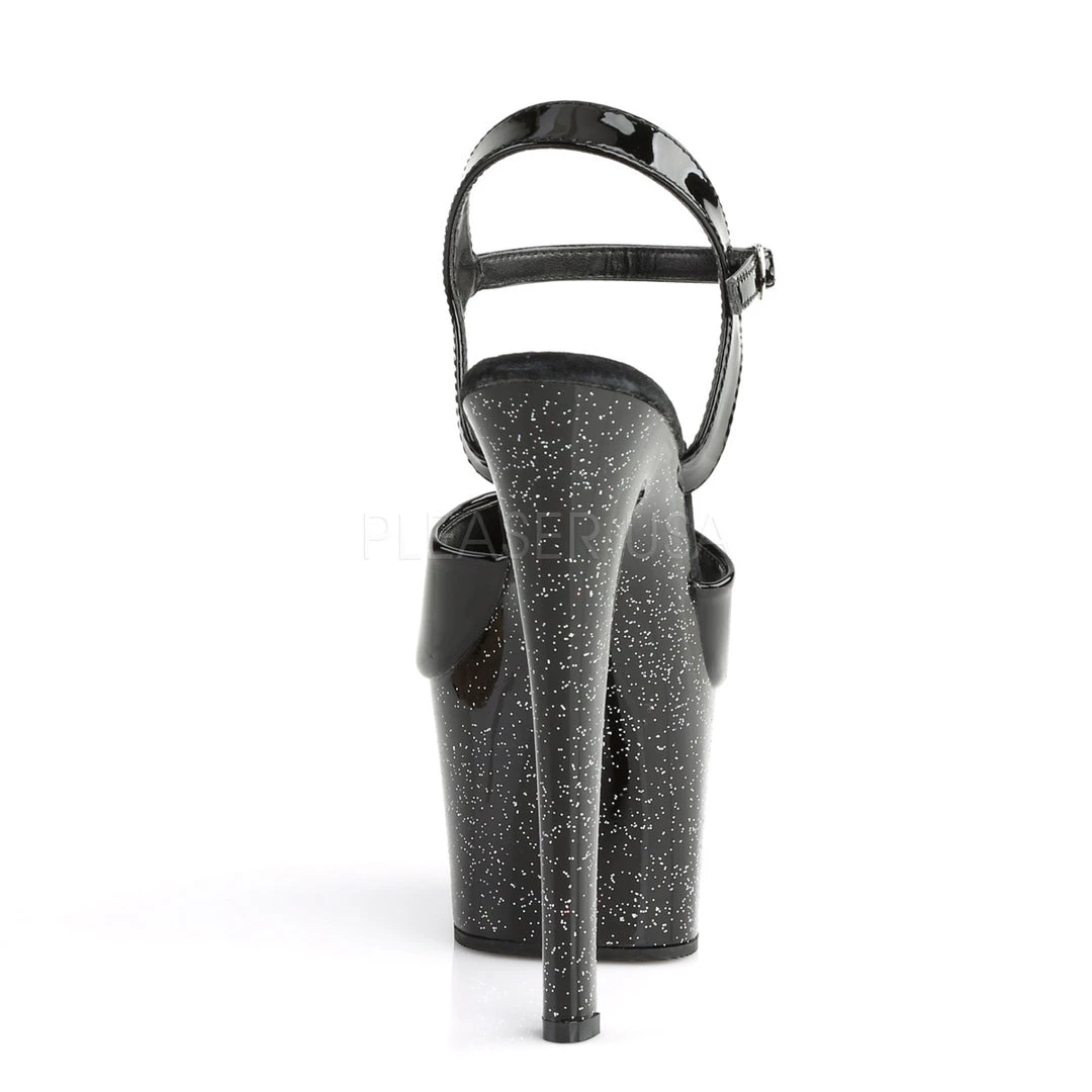 - 7″ Heel, 2 3/4″ Platform Ankle Strap Sandal with Mini Glitter