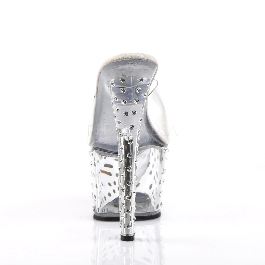 Women’s clear 7 inch heel Platform slide rhinestone studded exotic dancer shoes with a 2.8″ Platform.