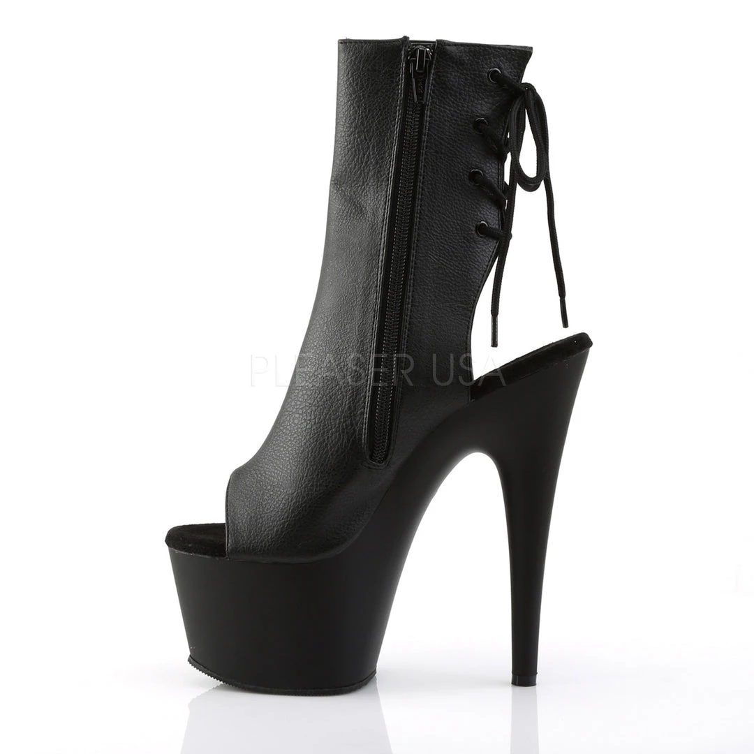 - 7″ Heel, 2 3/4″ Platform Open Toe/Heel Ankle Boot, Side Zip