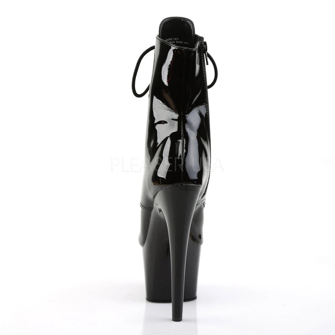 - 7″ Heel, 2 3/4″ Platform Peep Toe Lace-Up Ankle Boot, Side Zip