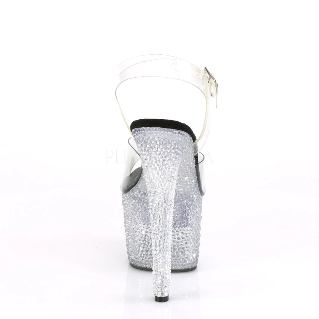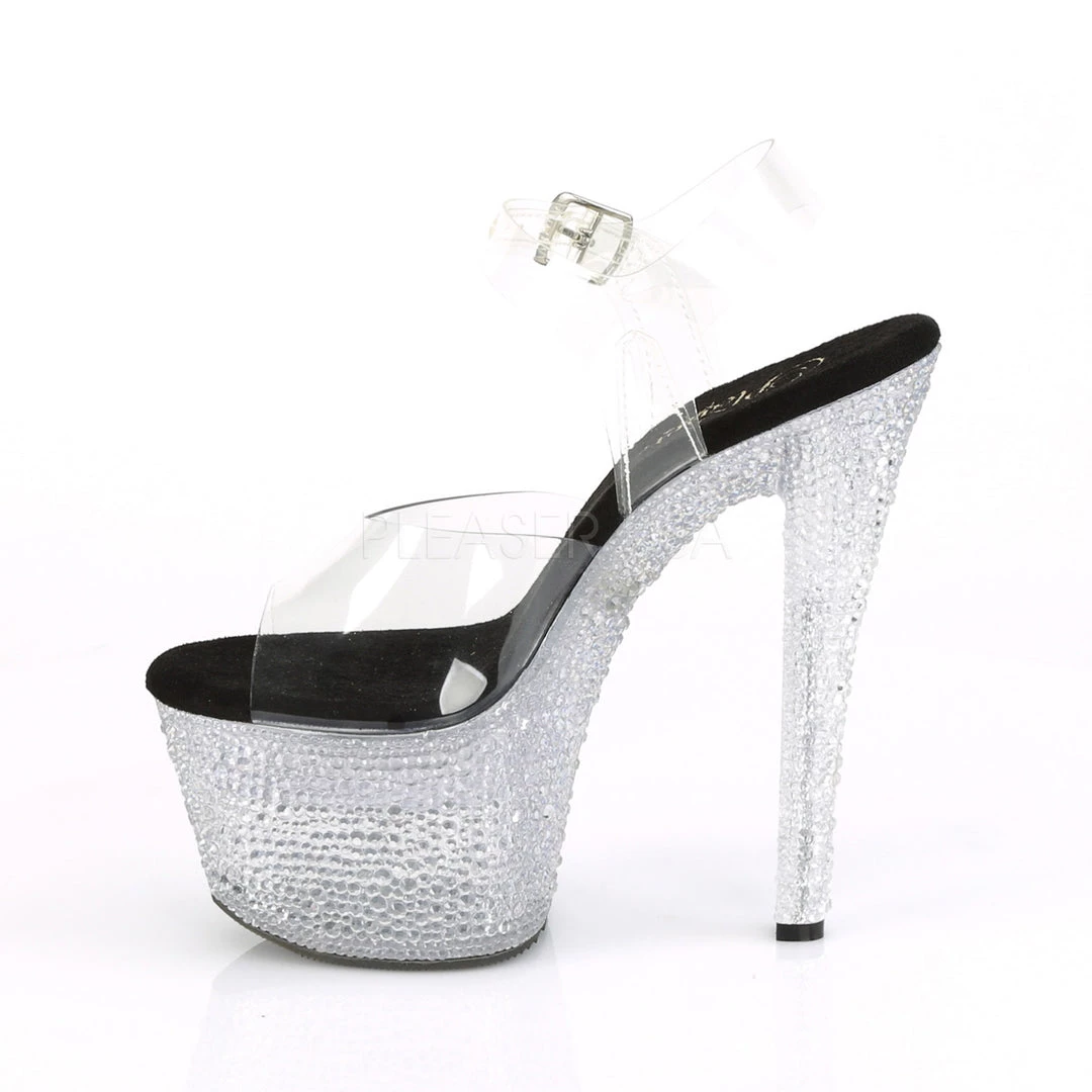 Turn up the heat with these clear 7 inch heel ankle strap LED illuminated exotic dancer shoes with a 2.8″ Platform.