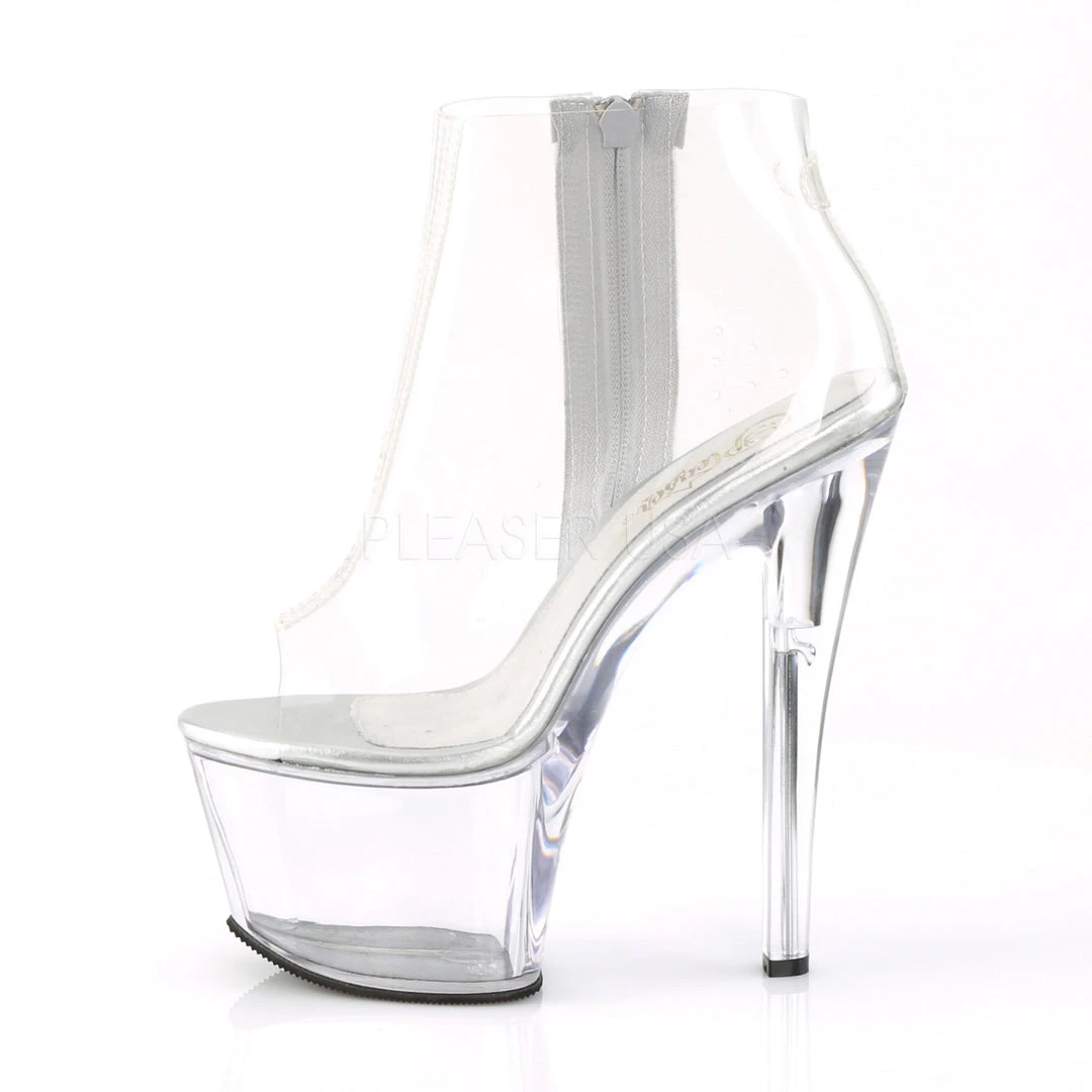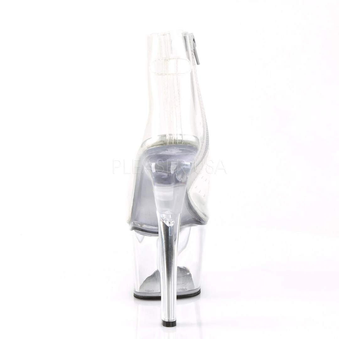 Add the finishing touch to your outfit with these 7 inch clear ankle booties with a 2.8 inch platform.