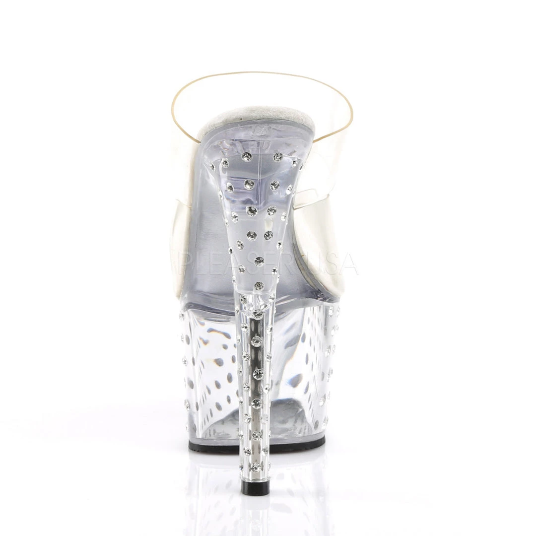 Give your legs and buttocks that firm and toned look with these clear 7 inch heel Platform slide rhinestone studded pole dancing shoes with a 2.8″ Platform.