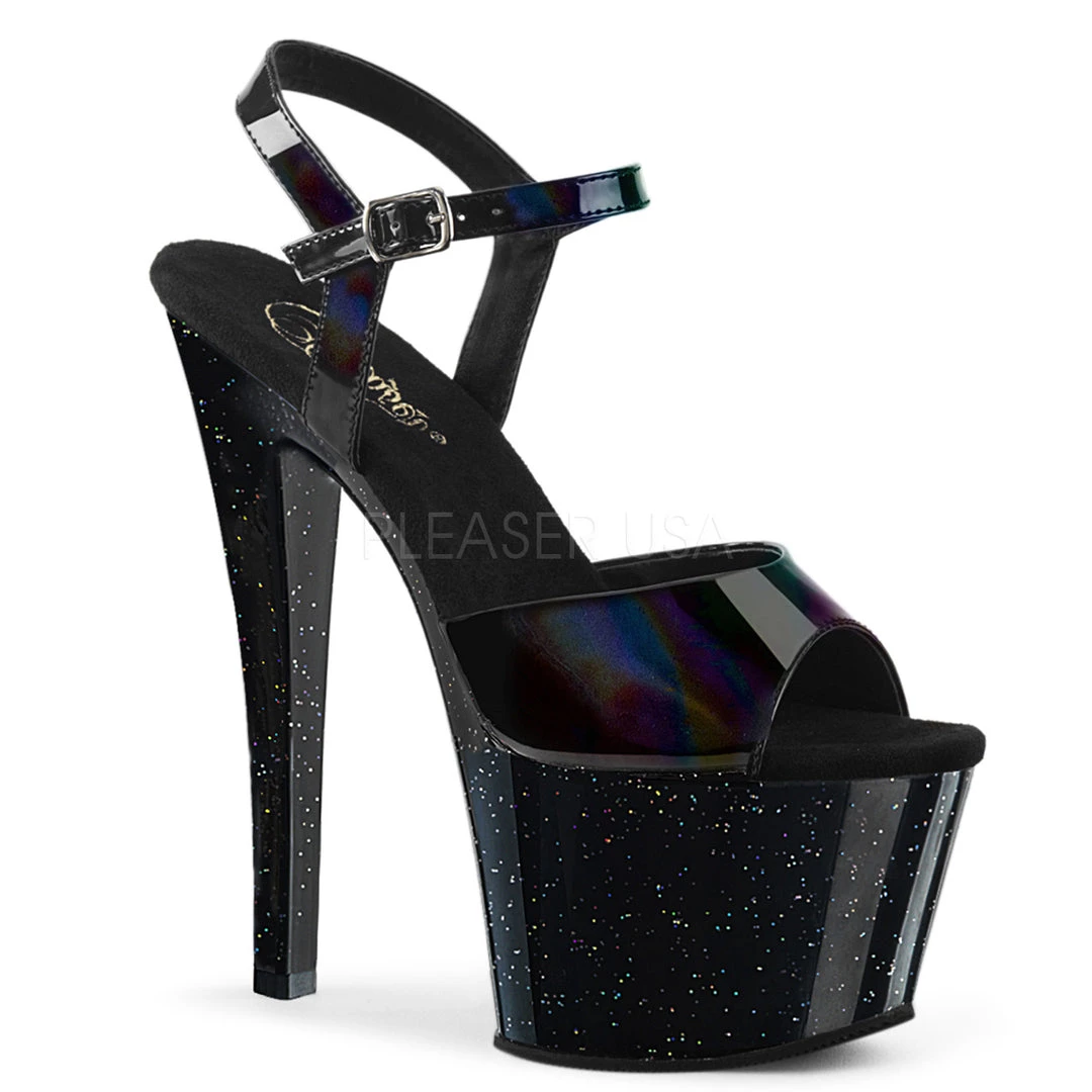 Women’s black 7 inch heel ankle strap pole dancing shoes with a 2.8″ Platform.