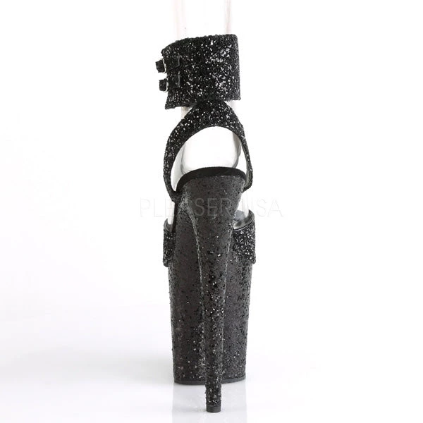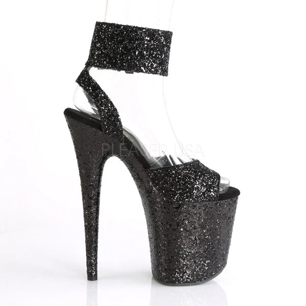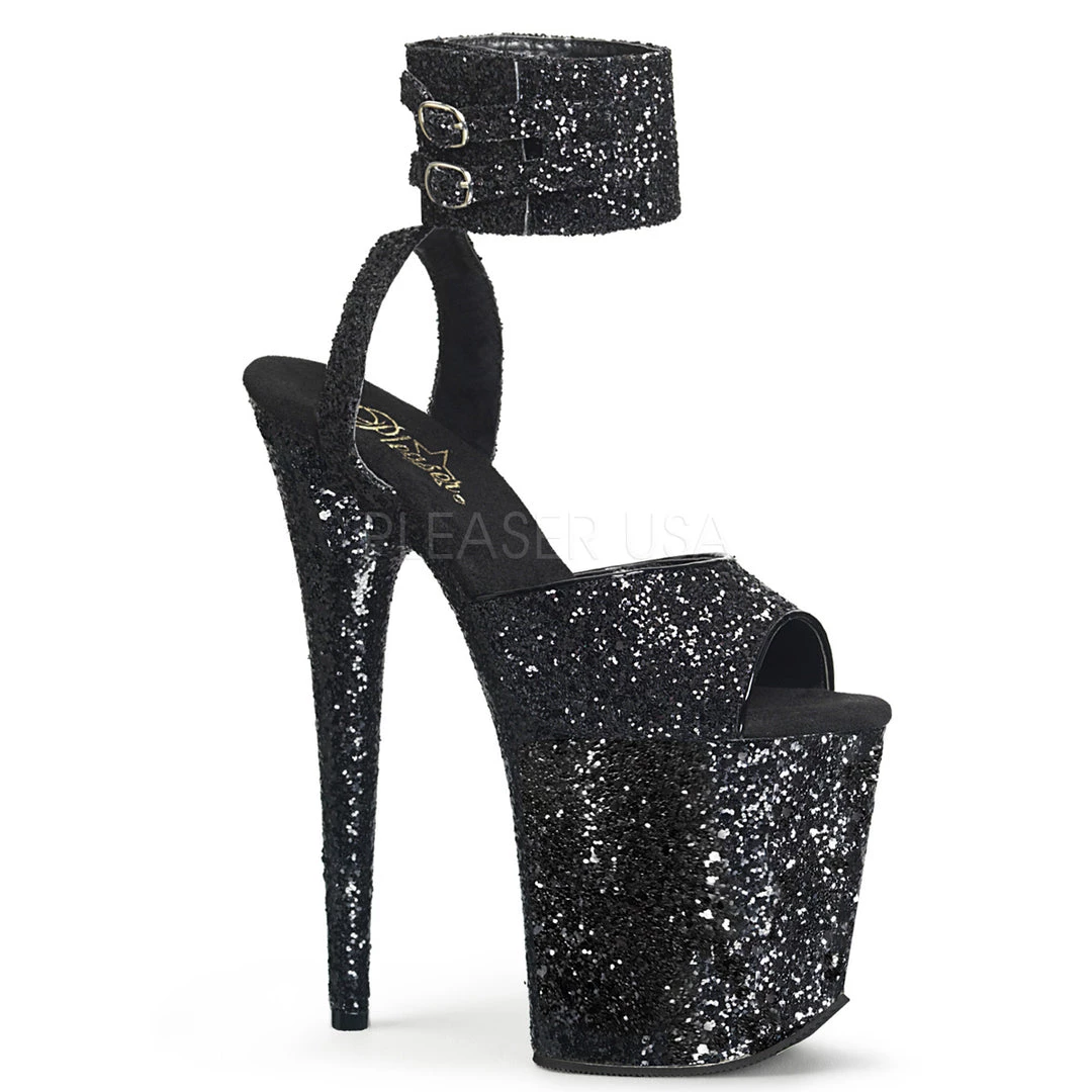 Women’s Black glitter 8 inch heel ankle strap exotic dancer shoes with 4″ Platform.