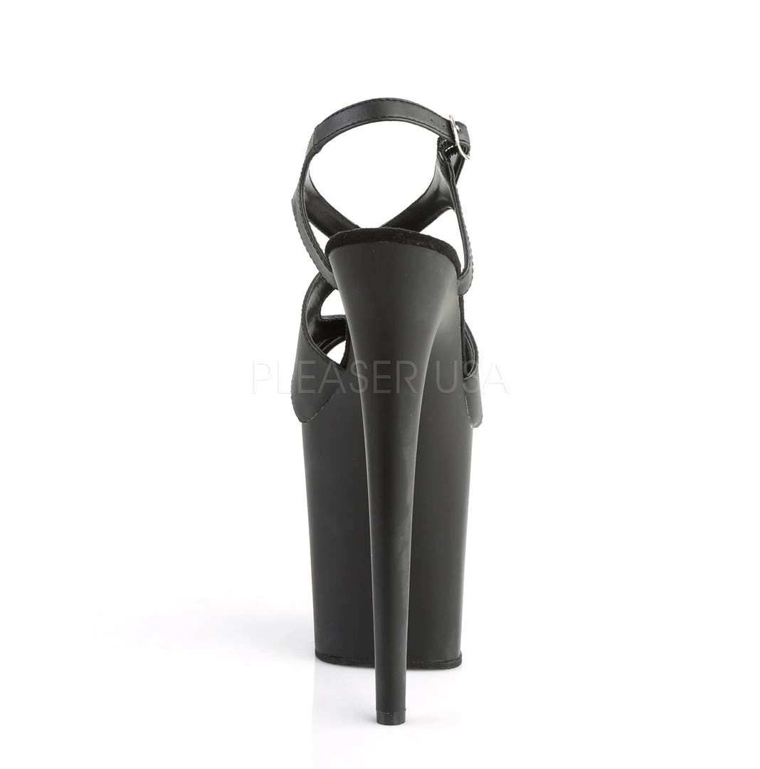 Women’s Black 8 inch heel faux leather pole dancing shoes featuring 4″ Platform.