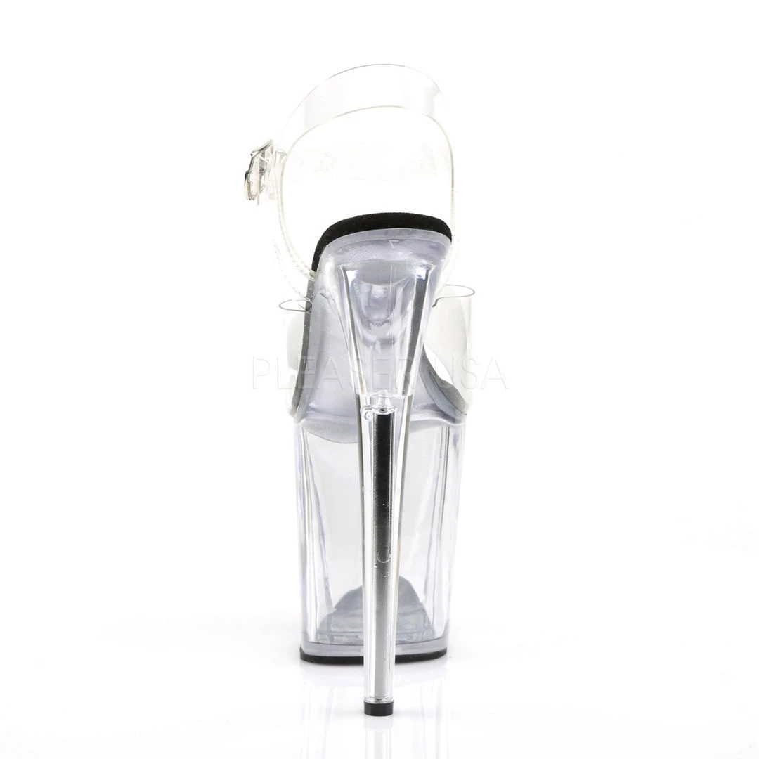 Women’s Clear/Black 8 inch heel ankle strap stripper shoes with 4″ Platform.
