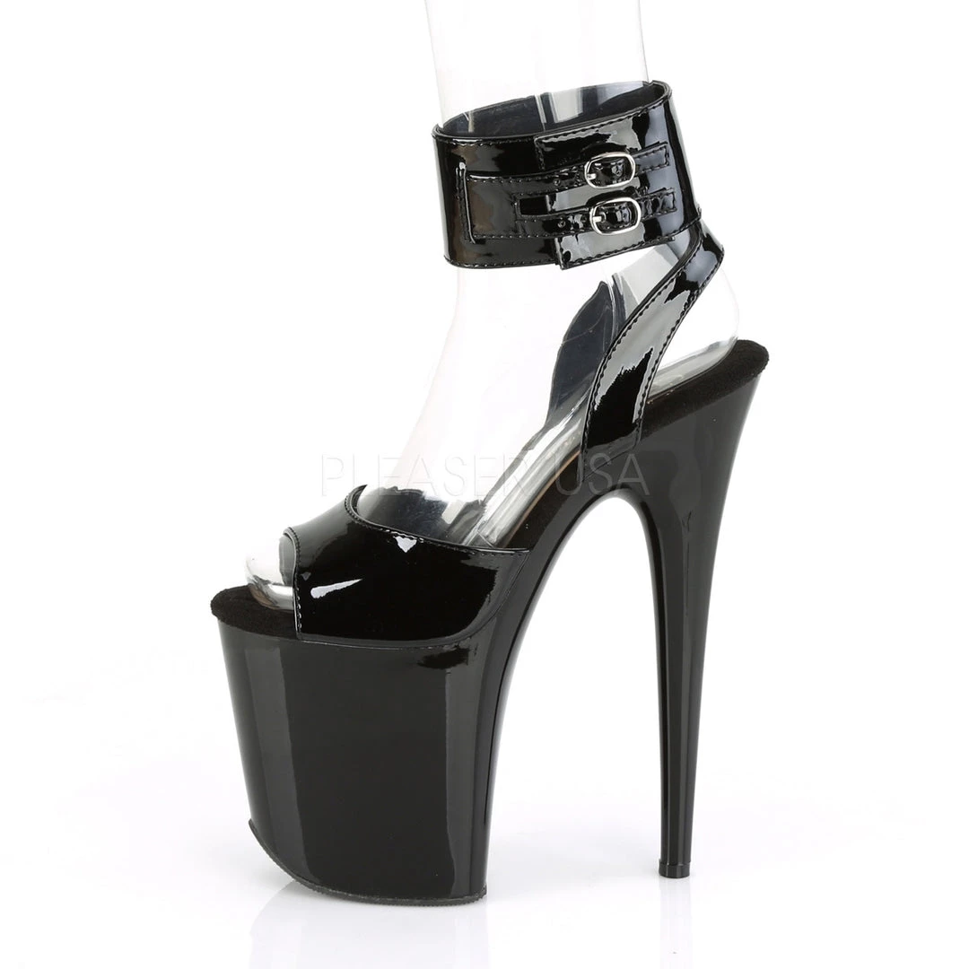 - 8″ Heel, 4″ Platform Ankle Strap Sandal