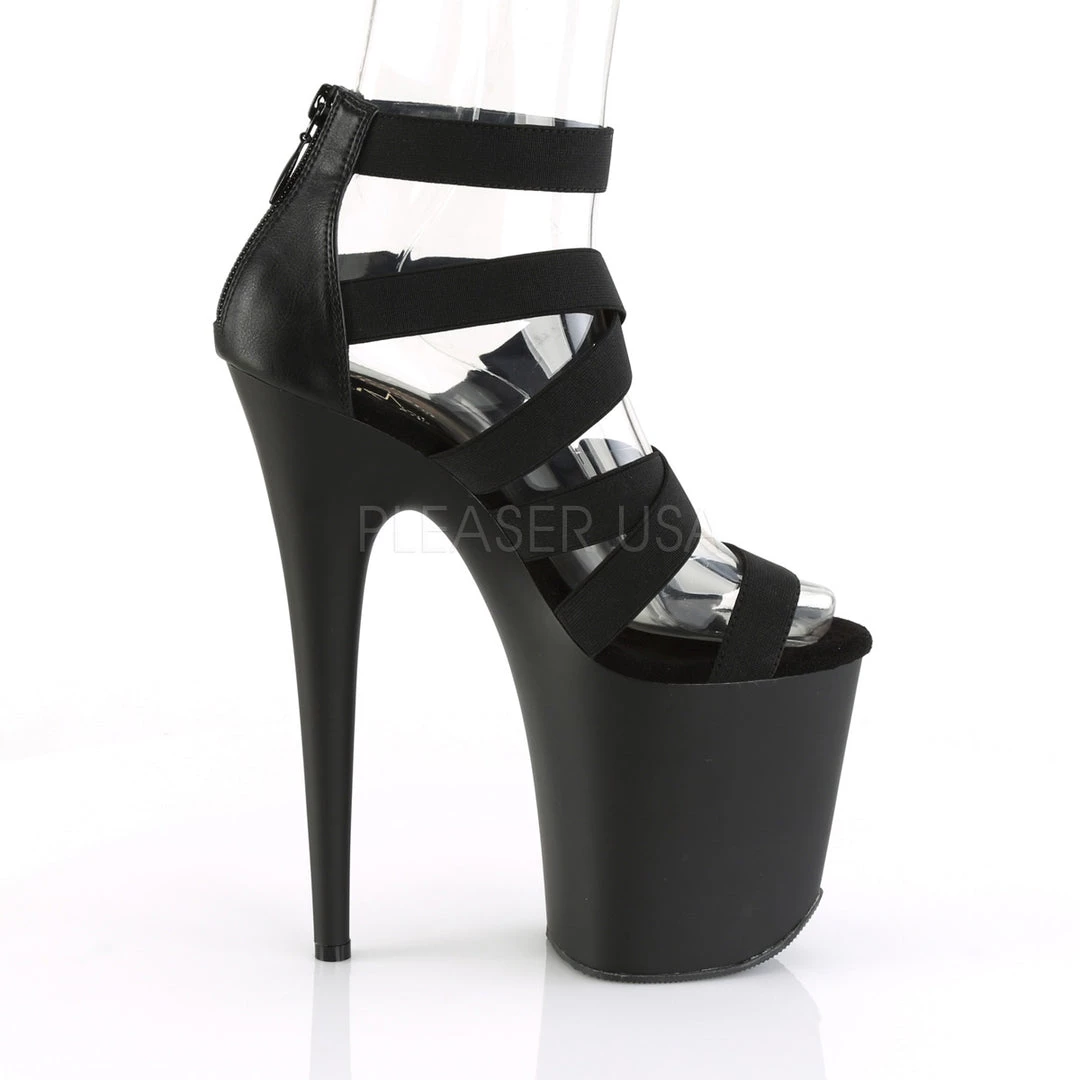 - 8″ Heel, 4″ Platform Ankle Strap Criss Cross Sandal, Back Zip
