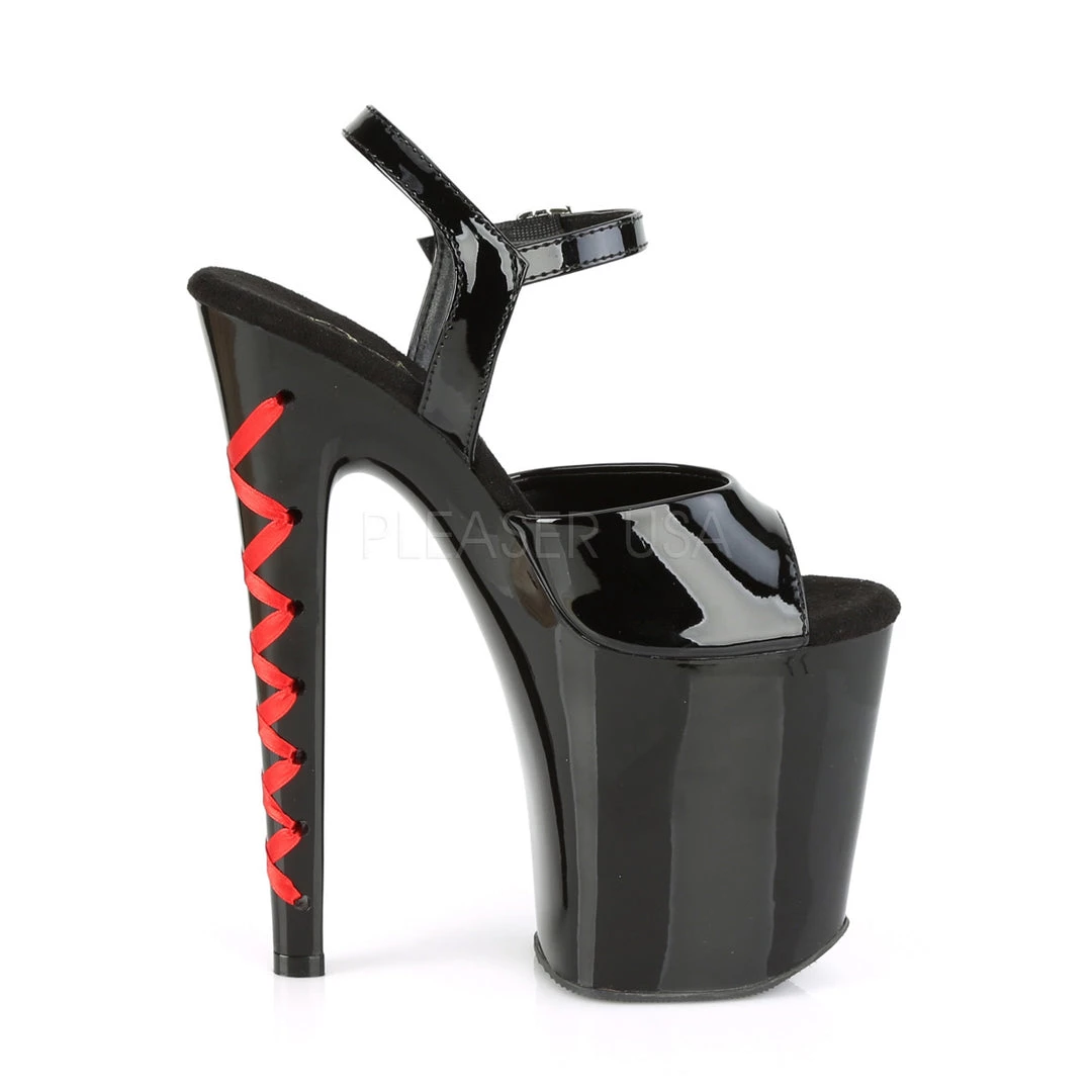 - 8″ Heel, 4″ Platform Ankle Strap Sandal with Corset Lace Heel