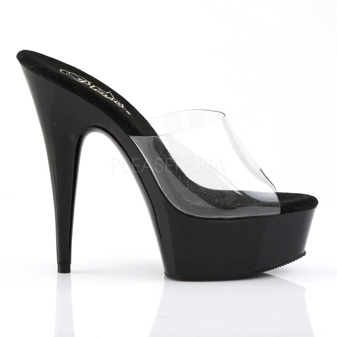 Women’s clear peep toe pole dancing shoes featuring a 6″ stiletto heel and 1.8″ Platform.