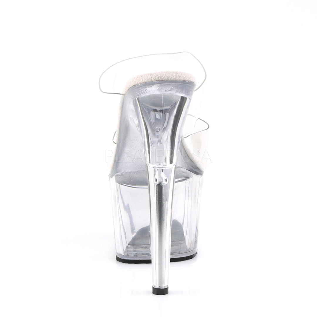 - 7″ Heel, 2 3/4″ Platform Slide, Two-Band Clear Straps