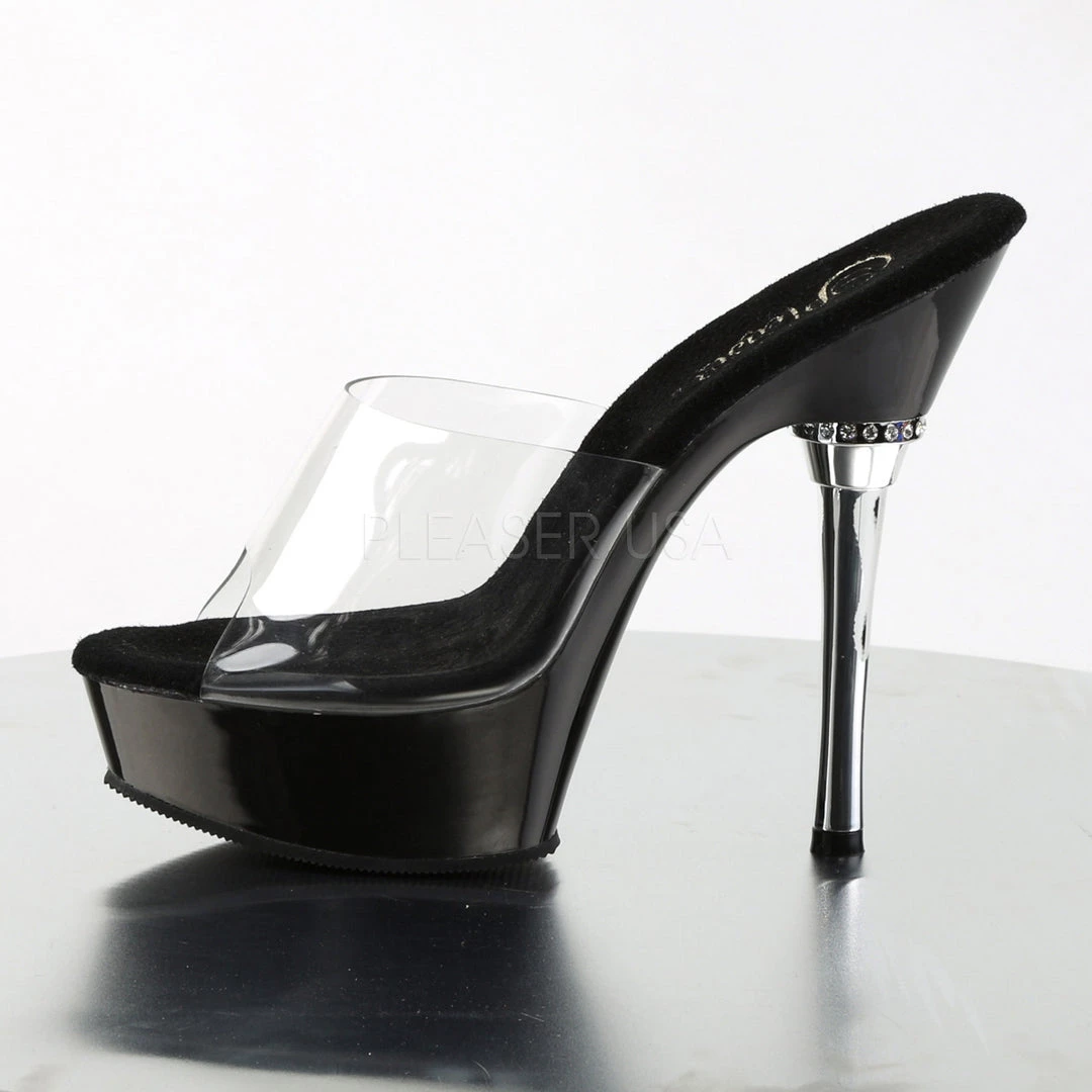 - 5 1/2″ Heel 1 1/2″ Platform Chrome Heel Sandal