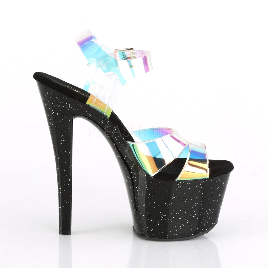 - 7″ Heel, 2 3/4″ Platform Ankle Strap Sandal with Mini Glitter Bottom