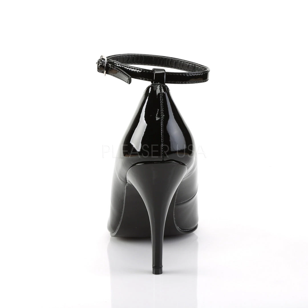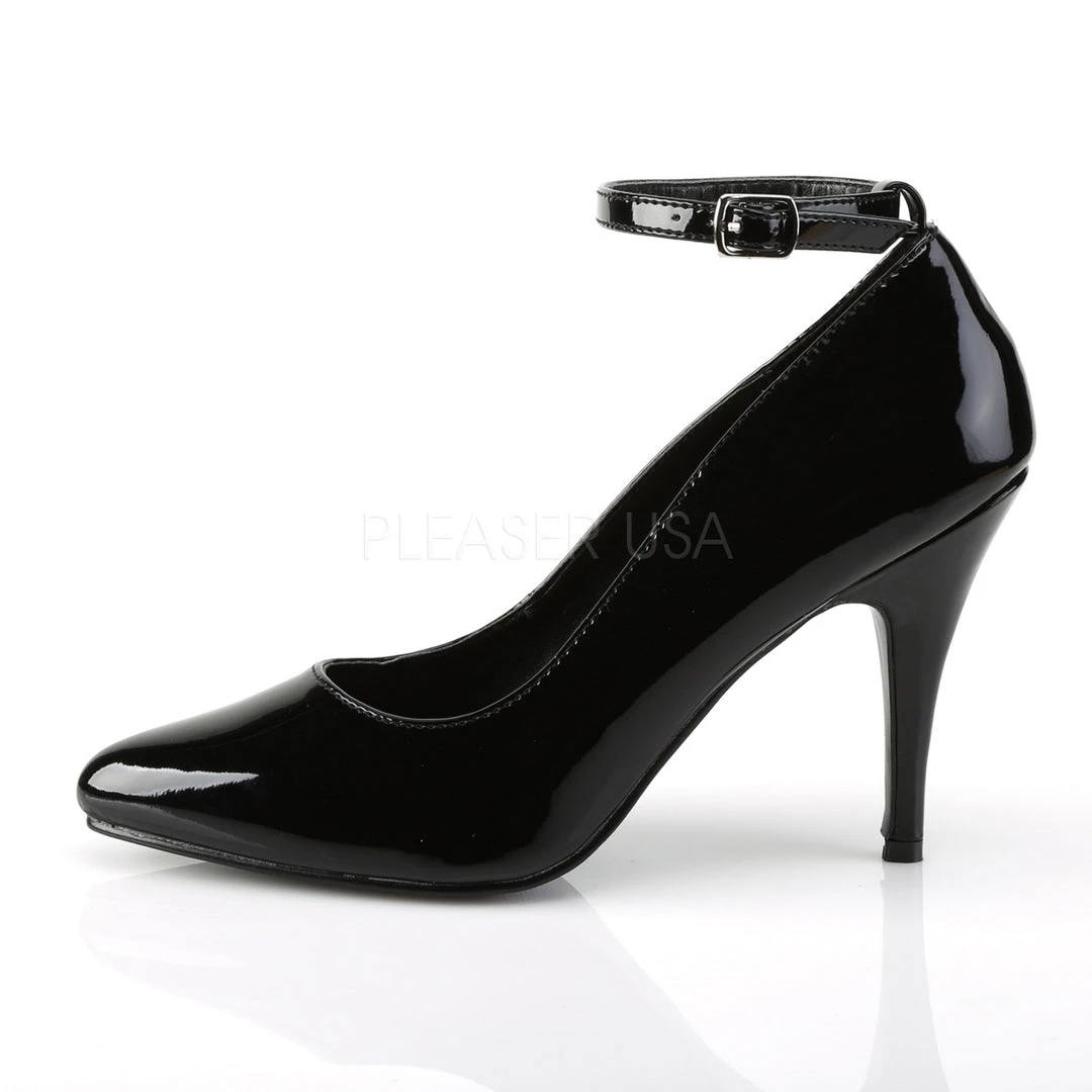 Women’s black pattern 4″ heel ankle strap pump shoes.