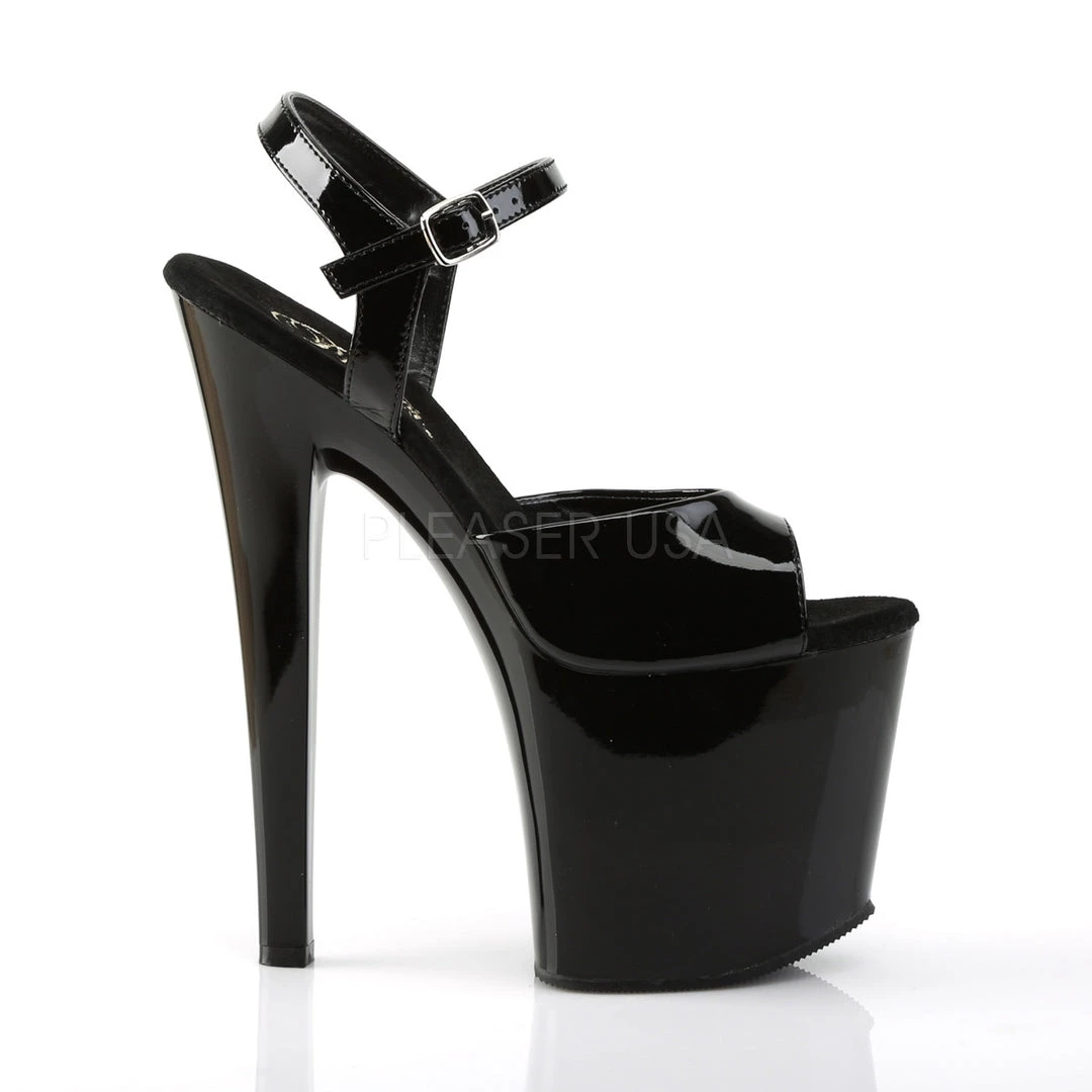 Women’s black 7.5 inch heel ankle strap stripper shoes with a 3.5″ Platform.