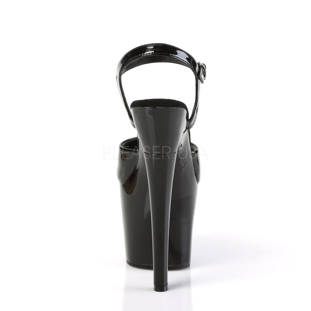 Women’s Black 7 inch stiletto heel ankle strap pole dancing shoes with 3.3″ Platform.