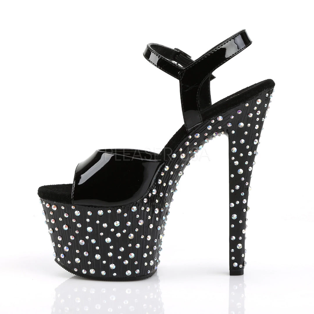 You’ll love the way you feel in these black 7 inch heel ankle strap exotic dancer pumps with a 2.8″ Platform.