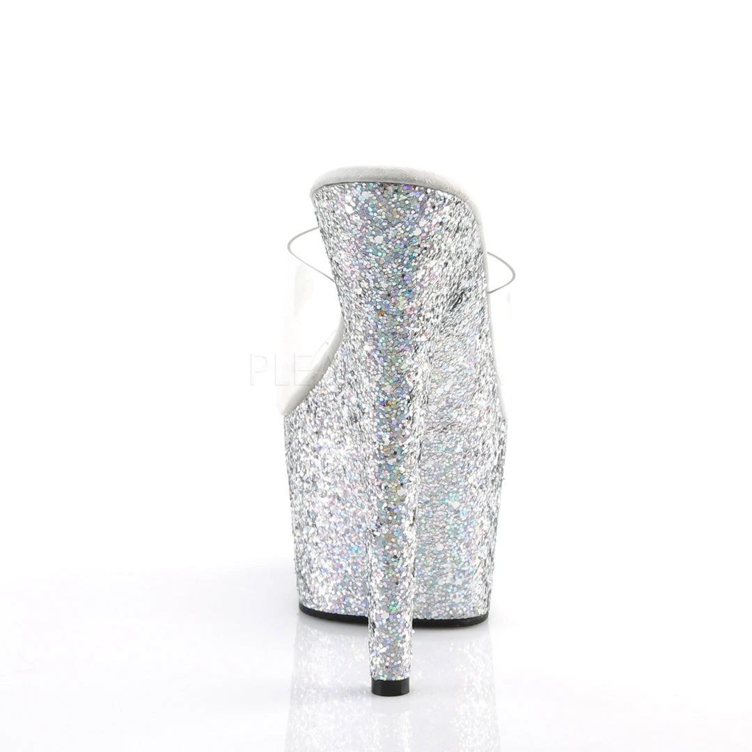 Women’s clear and silver Platform slide glitter exotic dancer pumps featuring a 7″ heel and 2.8″ Platform, to make those legs and booty pop!