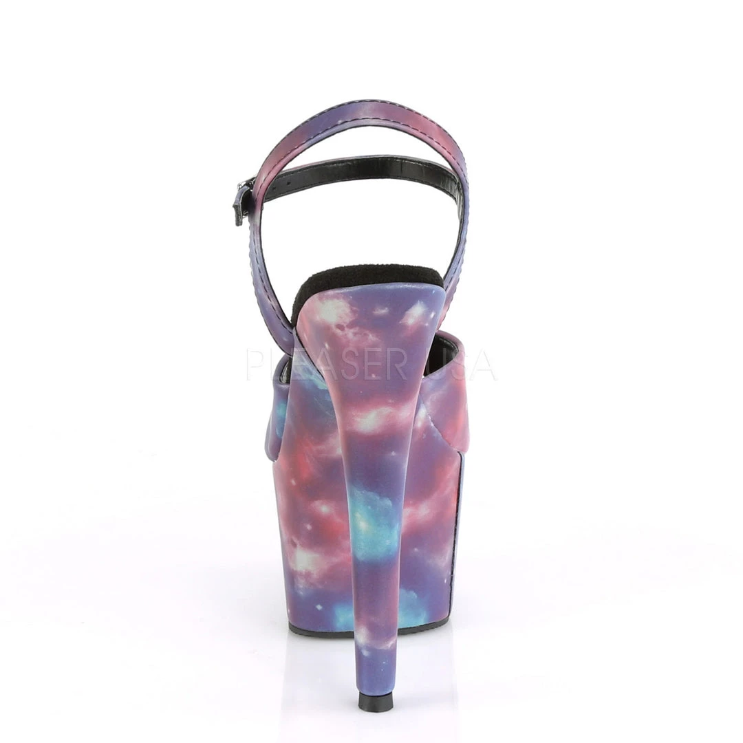- 7″ Heel, 2 3/4″ Platform Ankle Strap Sandal with Reflective Effect