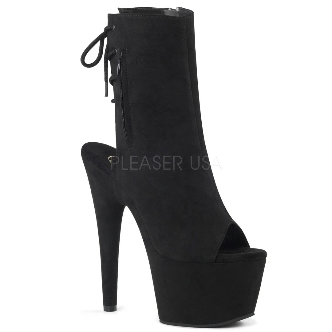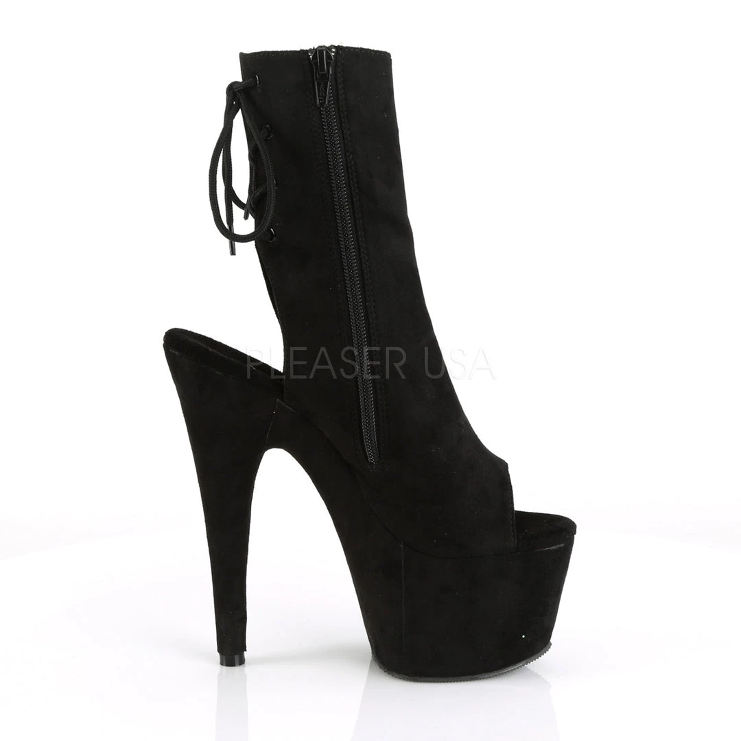 - 7″ Heel, 2 3/4″ Platform Open Toe/Heel Ankle Boot, Side Zip
