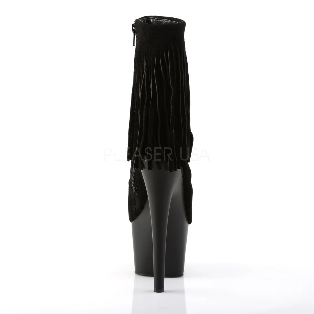 Fun and stylish, you’ll love these women’s 7 inch black open toe/heel ankle booties with a 2.8 inch platform.