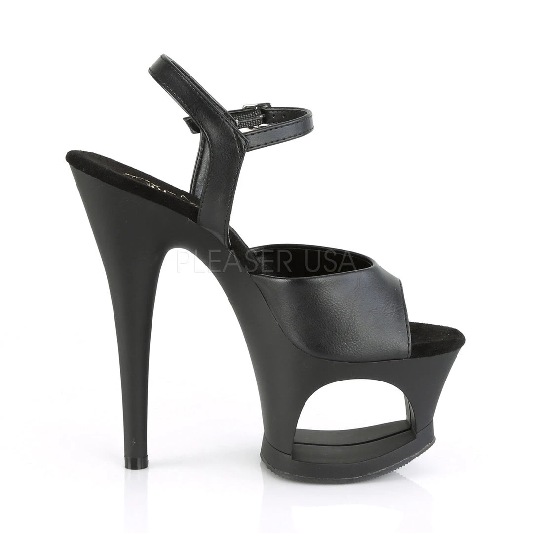 - 7″ Heel, 2 3/4″ Cut-out Platform Ankle Strap Sandal