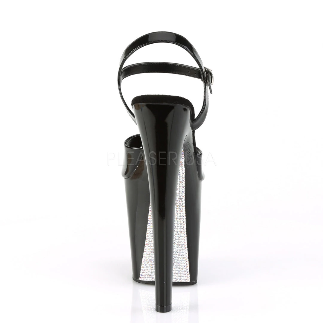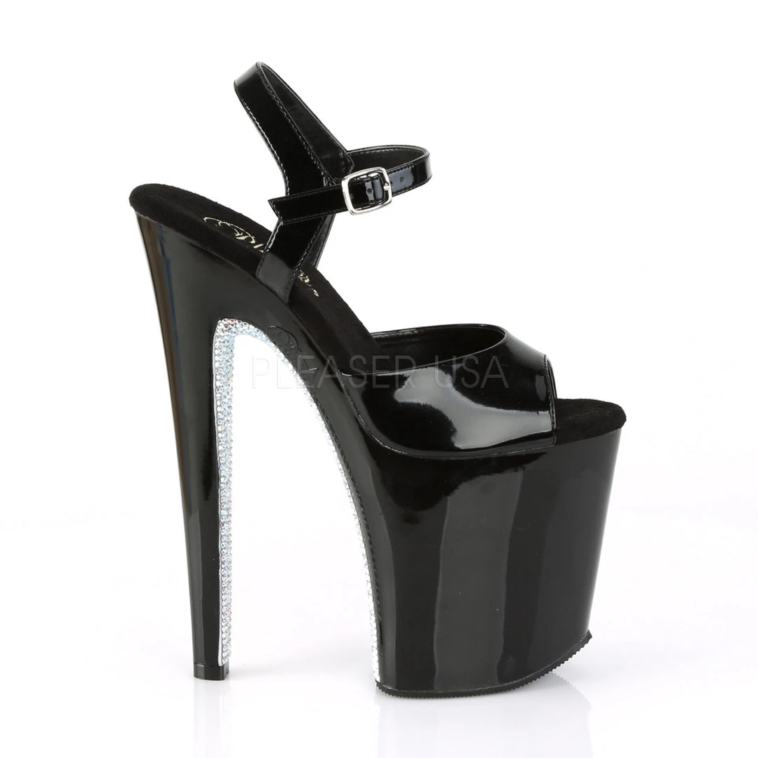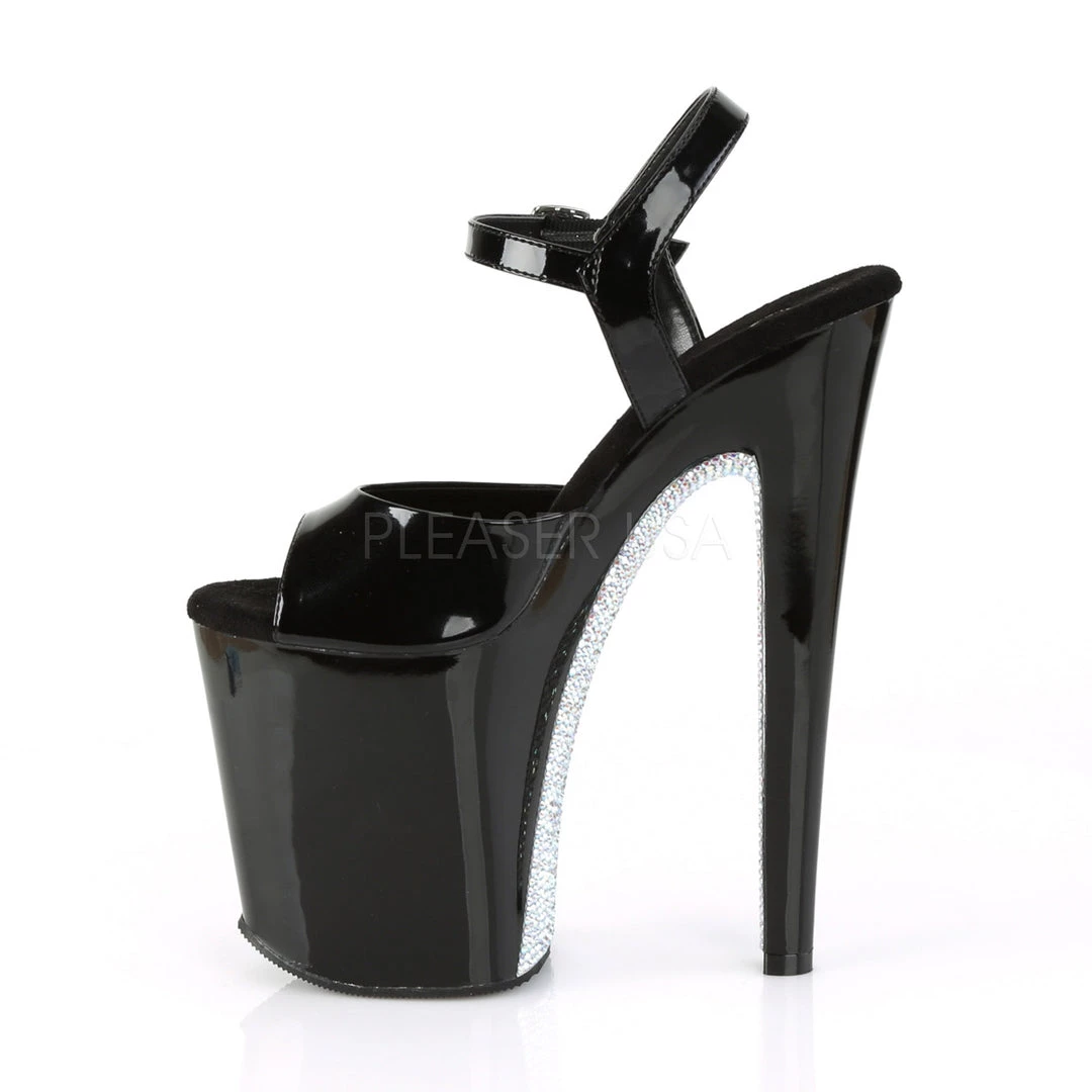 - 8″ Heel, 4″ Platform Ankle Strap Sandal with Contrast Rhinestones
