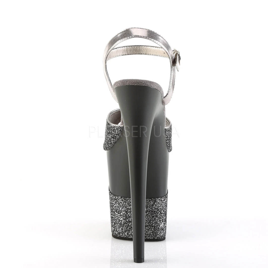 - 8″ Heel, 4″ Platform Ankle Strap Sandal with Glitter Wrapped PF