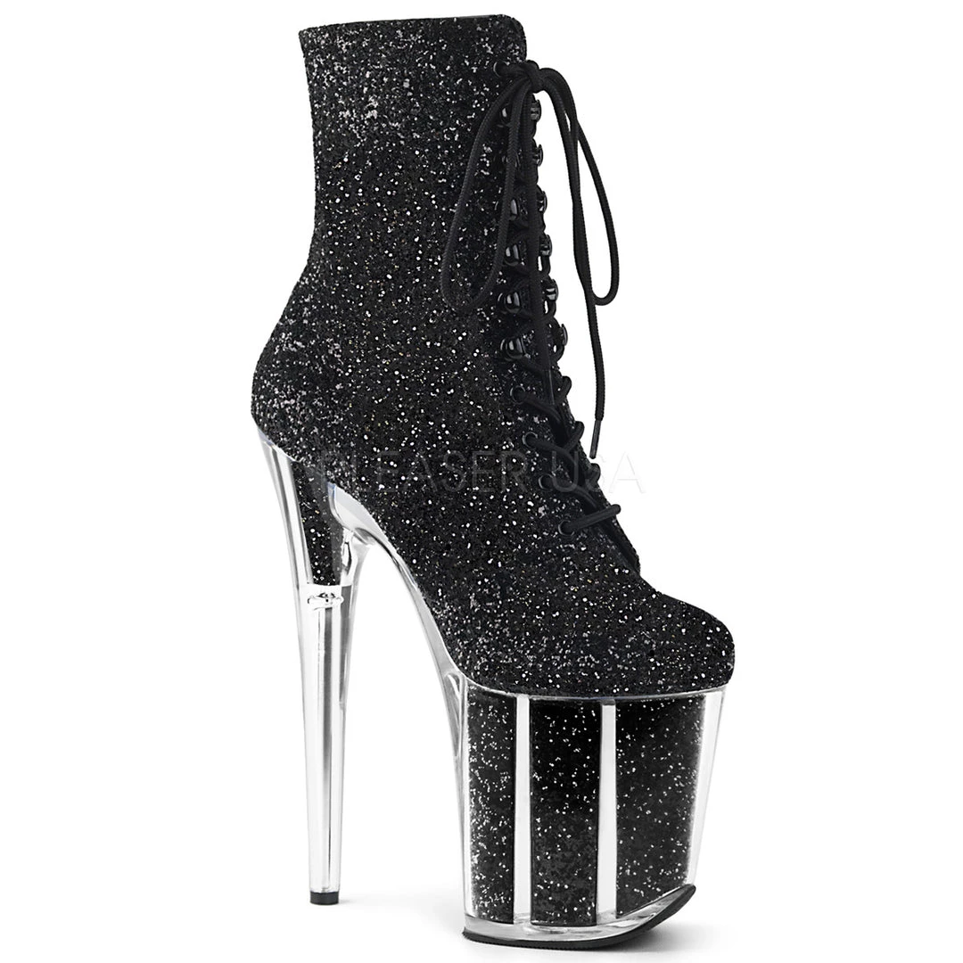 - 8″ Heel, 4″ Platform Lace Up Glitter Ankle Boot, Side Zip