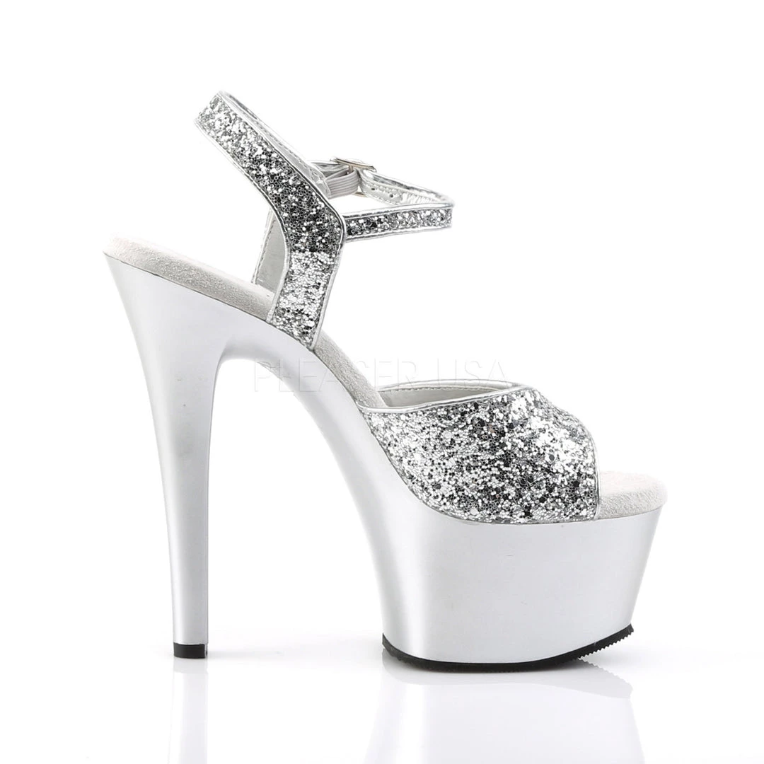 Women’s silver ankle strap glitter exotic dancer pumps with a 6″ heel and 2.3″ Platform for the perfect combo that’s sure to make him go wild!
