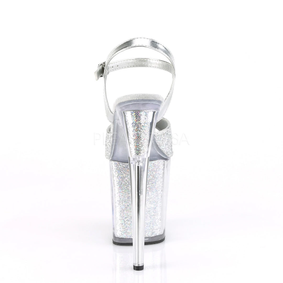 Make those legs and booty pop with these silver glitter 8 inch heel ankle strap exotic dancer shoes with a 4″ Platform.