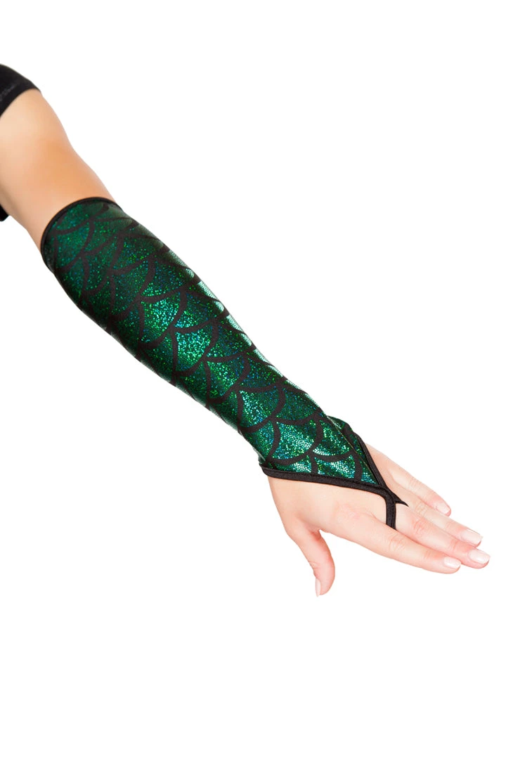 - Includes: Pair of mermaid fingerless elbow length gloves