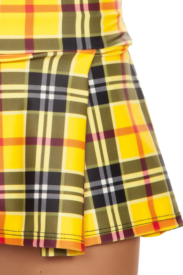 Put together your best Cher impersonation with this Pleated Yellow School Girl Skirt that features a flirty micro skirt in a bright yellow plaid color.