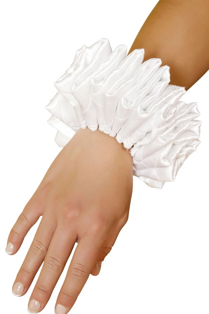 Accessorize your Jester Costume with these fun and flirty White Ruffled Wrist Cuffs that feature sturdy white ruffles. Comes in a set of 2 wrist cuffs.