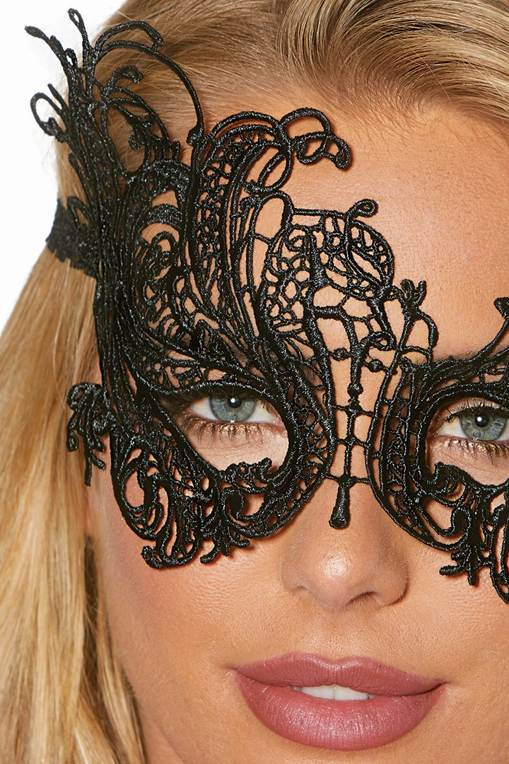Cloaked in seduction, this Embroidered Venice Eye Mask features a beautifully embroidered eye mask with stretch elastic headband and thickly embroidered lace.