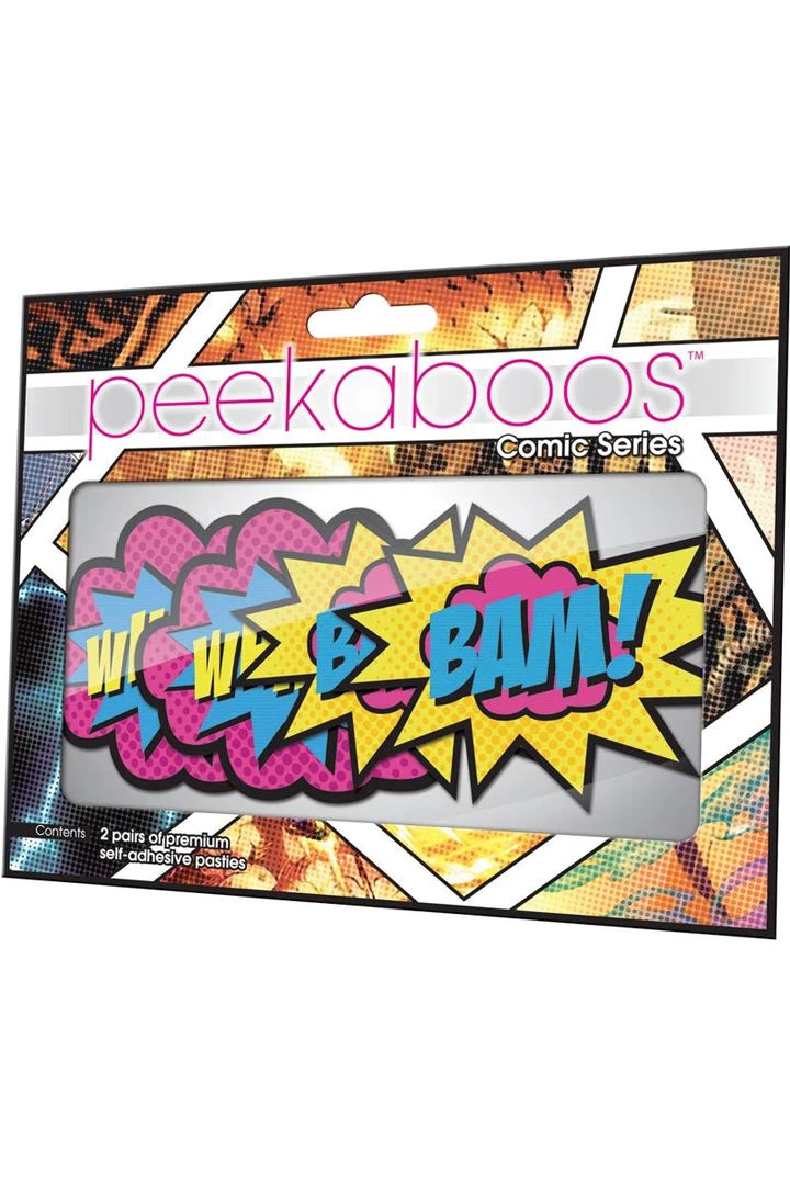 Peekaboos Comic Series. 2 pair of “wham” and “Bam!” superhero pasties.